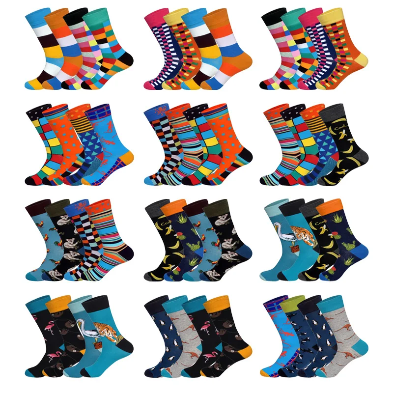 SPECIAL OFFERS LIONZONE 4Pairs Lot 2019 Hot Sale Fashion Streetwear Men Brand High Quality Cotton Happy Socks Christmas Novelty Summer Socks Online