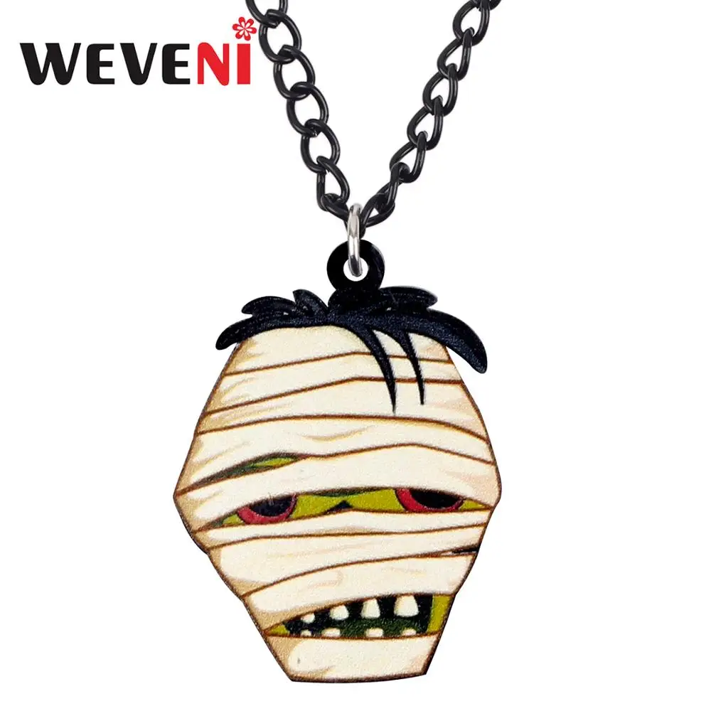 SPECIAL OFFERS WEVENI Acrylic Novelty Mummy Head Necklace Pendant Chain Collar Halloween Jewelry For Women Girls Kids Charm Gift 2019 Hot Sale one of the best