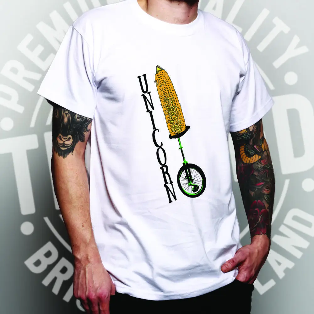 SPECIAL OFFERS BUY Now Novelty Pun T Shirt Cob Of Corn Unicorn Unicycle