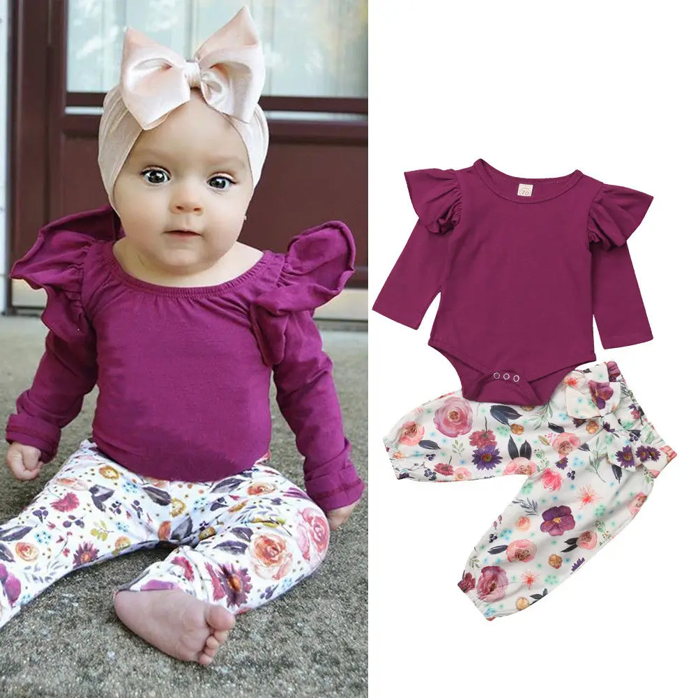 DISCOUNT definitely the 2pcs Newborn Baby Girl Clothes Set Toddler Infant Autumn Winter Long Sleeve Solid Romper Floral Pants Trousers Cotton Outfits RECOMMENDED TODAY