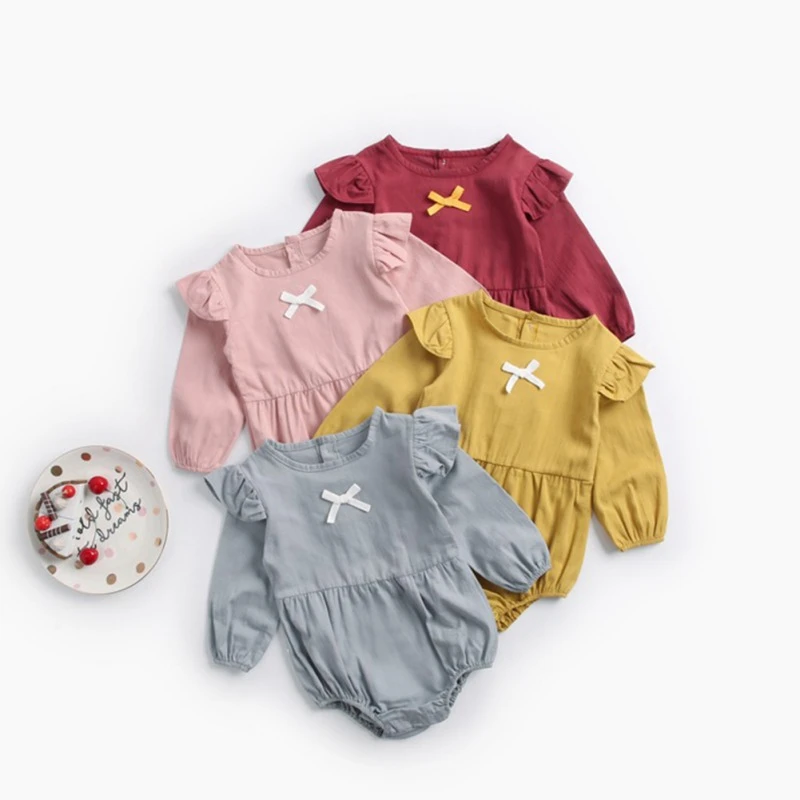 SPECIAL OFFERS BUY Now Baby Newborn Girls Solid Print Jumpsuit Flare Long Sleeve Infant Casual Bodysuit Outfits Cotton Clothes For RECOMMENDED TODAY