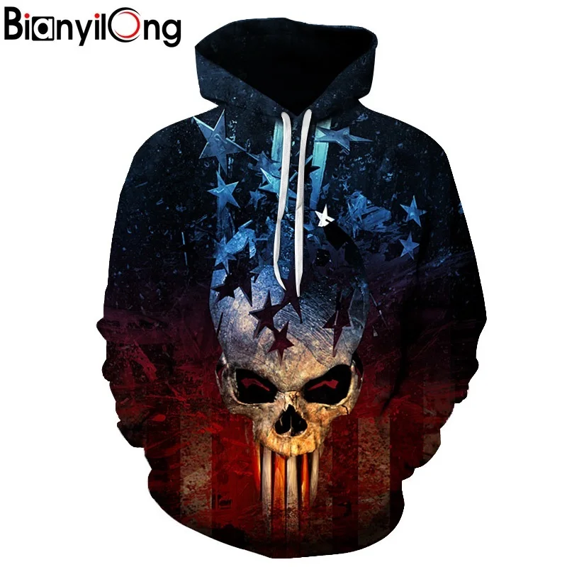cheap Hot Sale Brand Skull Printed Hoodies Men 3D Sweatshirt Quality
