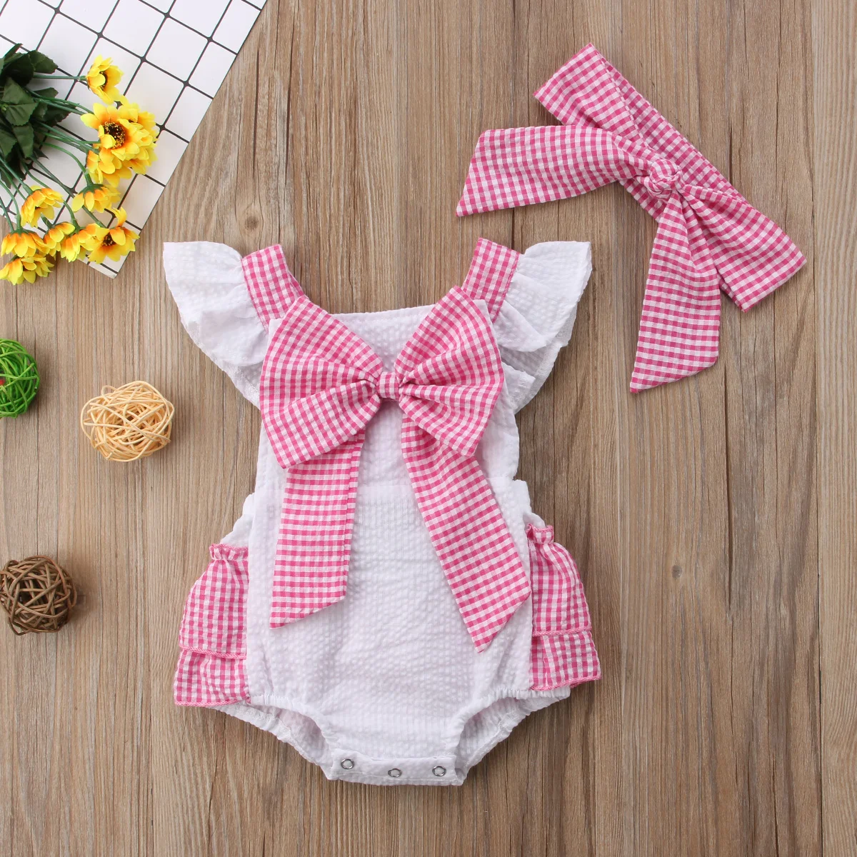 SPECIAL OFFERS Infant Newborn Baby Girls Bow Backless Bodysuit Jumpsuit Outfits Playsuit One piece Clothes Summer Fashion Plaid Cotton Clothing one of the best