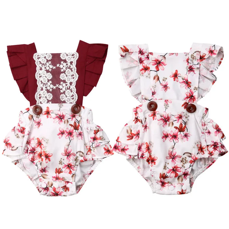 SPECIAL OFFERS 2019 Newborn Baby Girls Lace Floral Ruffle Romper One Pieces Jumpsuit Fly Sleeve Patchwork Outfits Sunsuit Online