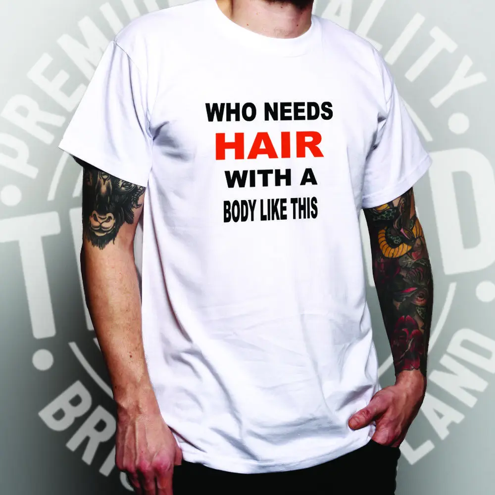 HOT OFFERS Novelty T Shirt Who Needs Hair With A Body Like This Slogan