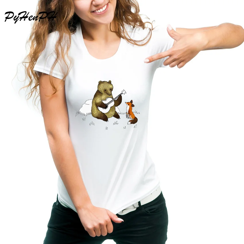 HOT OFFERS 2017 Hot Sale Bear And Fox Design Women T Shirt Play Music T