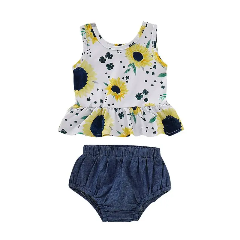 Best Get Special Newborn Baby Girls Clothes Tops Sunflower Print Tank Top Shorts Pants Outfits HOT Discount