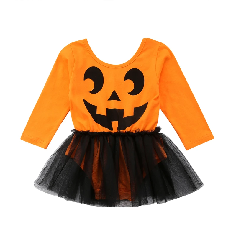 cheap Newborn Infant Baby Girls Halloween Tutu Romper Cartoon Pumpkin Lantern Jumpsuit Clothes Outfit discount