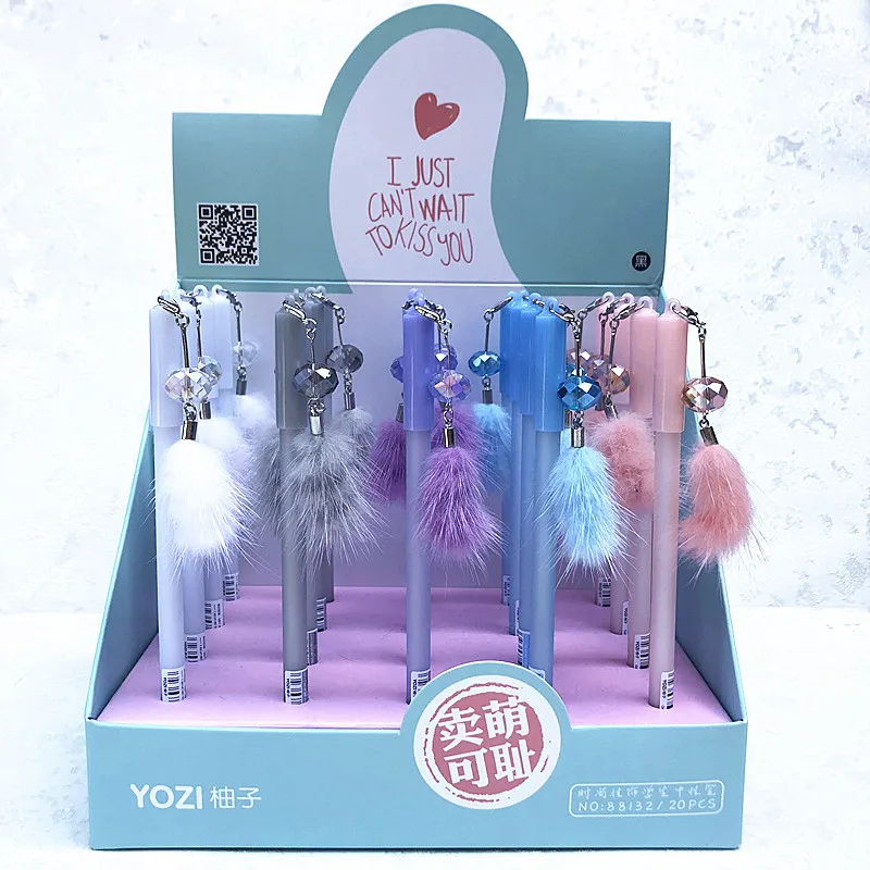 Dear my personal favorite 20 100pcs hot sale cute Mink wolf tail pendant gel pen student smooth black water pen stationery,crystal pendant novelty pen RECOMMENDED TODAY
