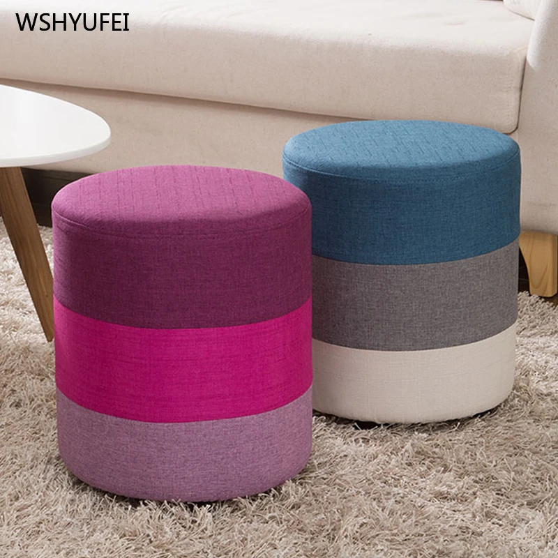 Shoes Bench Fashion Round Stool Linen Cotton Fabric Sofa Block Makeup