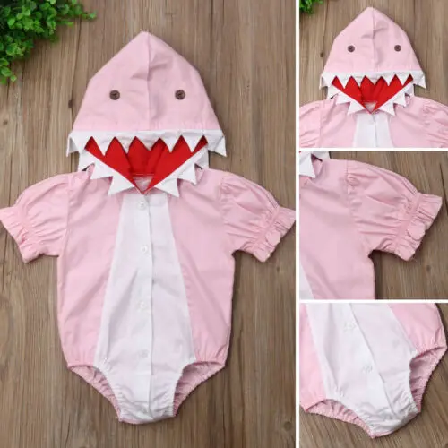 Best Summer Newborn Baby Girl Clothes Cartoon Shark Hooded Romper Jumpsuit Outfit RECOMMENDED TODAY HOT OFFERS BUY Limited