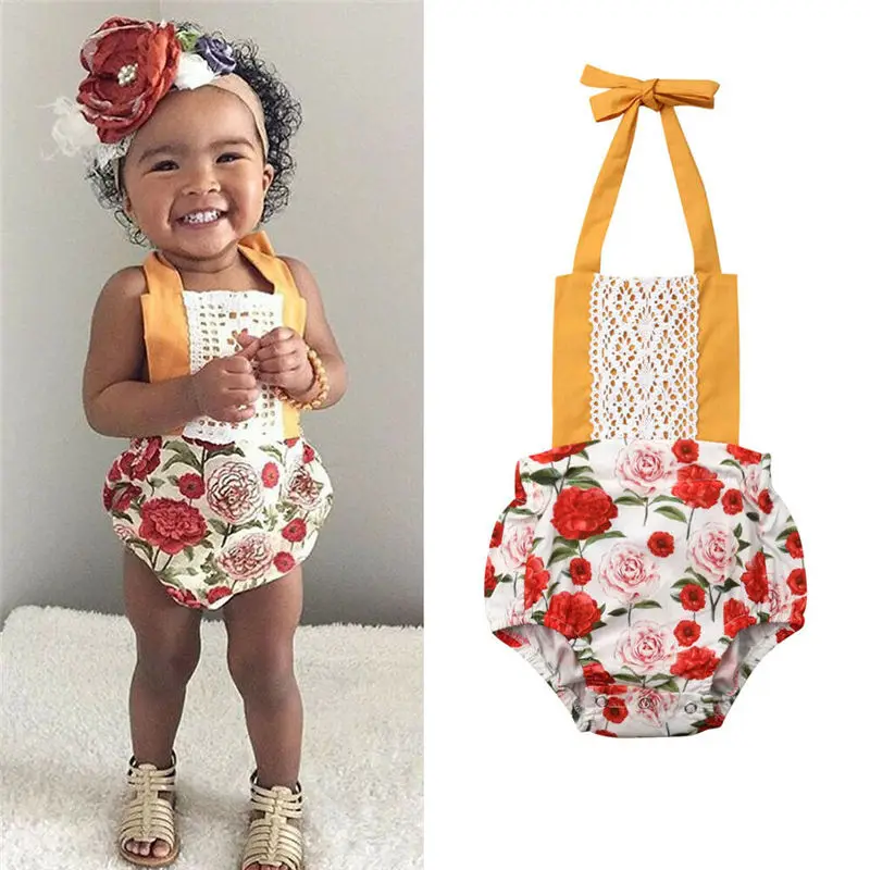 buy buy Kids Clothes Newborn Infant Baby Girls Rose Bodysuit Halter Lace Jumpsuit Summer Toddler Girls Bodysuit Children Outfit 3M 24M HOT Discount