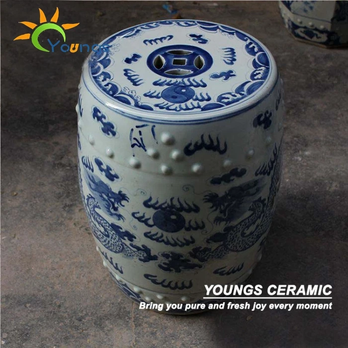^**SPECIAL OFFERS Antique Chinese HAND PAINTED Dragon Blue and White Porcelain Garden Furniture Stool #@Online