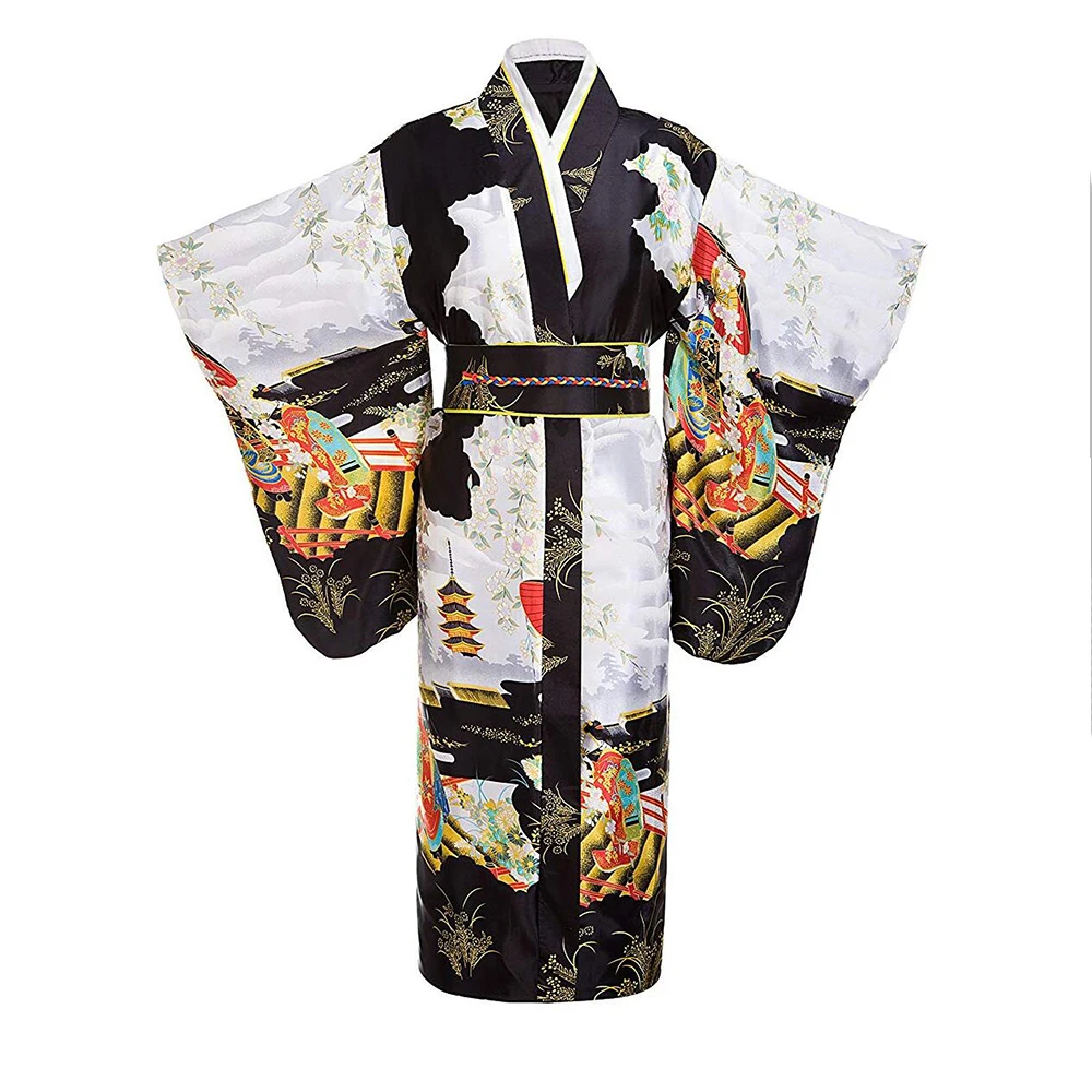 DISCOUNT my personal favorite Top Sale Black Japanese Female Tradition Silk Yukata Vintage Original Kimono With Obi Novelty Printed Dress One size JK004 RECOMMENDED TODAY