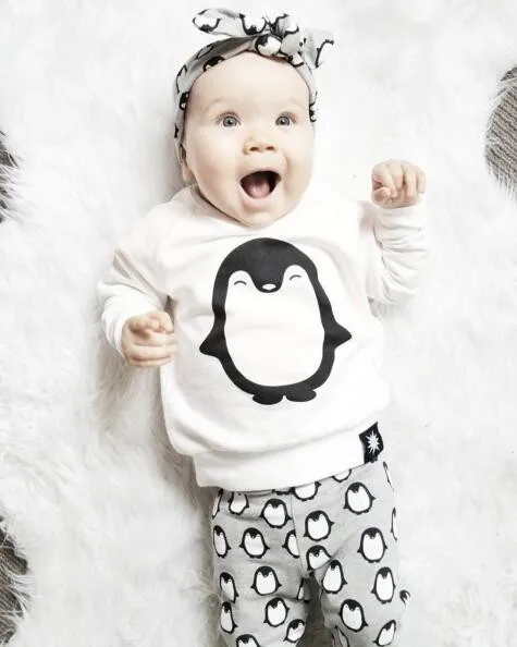 SPECIAL OFFERS 3PCS 2019 Baby Boy girls Clothes Newborn Baby Girl Boys Clothing Set Cute Penguin Long Sleeve Top Pants Headband Infant Outfits Online