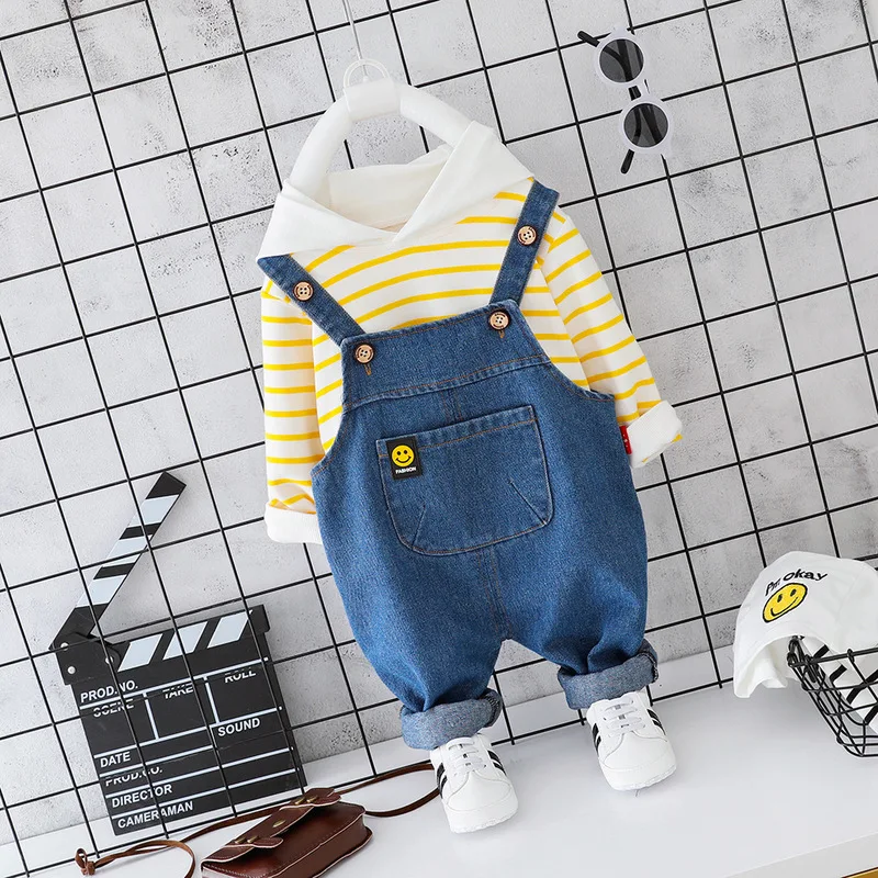 SPECIAL OFFERS BUY Now Baby Boy Hooded Set Striped Hoodie+Smile Cowboy Straps Trousers 2PCS Toddler Kids Suit Novelty Newborn Clothes Outfit 1 3 Years LIMITED DISCOUNT TODAY
