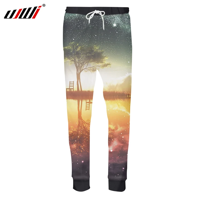 cheap UJWI New Fashion 2018 Hot Sale 3D Print Nightfall Tree Sweatpants